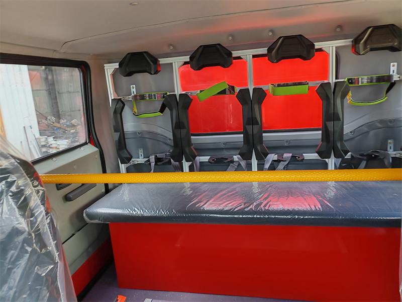 هـ تخزين المعدات: تتميز غرفة المعدات الأمامية بتصميم باب دوار من سبائك الألومنيوم مغلق بالكامل، مما يسمح بالتخزين المنظم لمختلف معدات مكافحة الحرائق، مثل خراطيم الإطفاء، وفؤوس الإطفاء، والمجارف، والمعاول، وطفايات الحريق، وبدلات الإطفاء، وجسور الخراطيم، مما يسهل الوصول السريع لرجال الإطفاء.