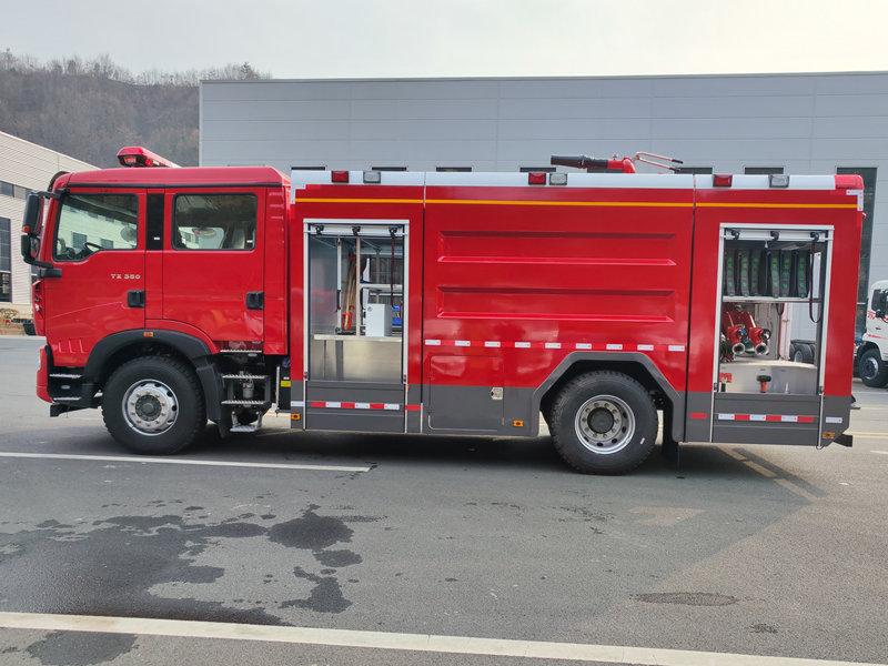 شاحنة إطفاء SINOTRUK HOWO 8000L الرغوية هي مركبة إطفاء حرائق احترافية عالية الأداء، مبنية على هيكل SINOTRUK HOWO ZZ5207TXFV471GF5. وهي مجهزة بمحرك ديزل CNHTC MC07H.35-60 (350 حصان/257 كيلوواط) وخزان سعة 8 أمتار مكعبة (خزان مياه من الفولاذ الكربوني سعة 6 أمتار مكعبة + خزان رغوة من الفولاذ المقاوم للصدأ سعة 2 متر مكعب). مزودة بمضخة إطفاء CB10/60 (60 لتر/ثانية) ومدفع رغوة PL8/48، بمدى نفث ماء ≥70 مترًا ومدى نفث رغوة ≥60 مترًا. بأبعاد إجمالية تبلغ 8590×2550×3450 مم، وسرعة قصوى تبلغ 100 كم/ساعة، صُممت خصيصًا لحرائق النفط والمواد الكيميائية، مما يجعلها مثالية للبيئات عالية الخطورة، مثل مصانع البتروكيماويات والموانئ والمناطق الصناعية. وهي تُعدّ جهاز إطفاء حرائق رئيسيًا عالي الكفاءة والموثوقية.