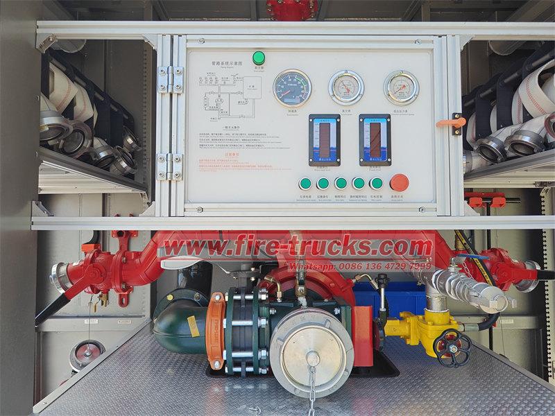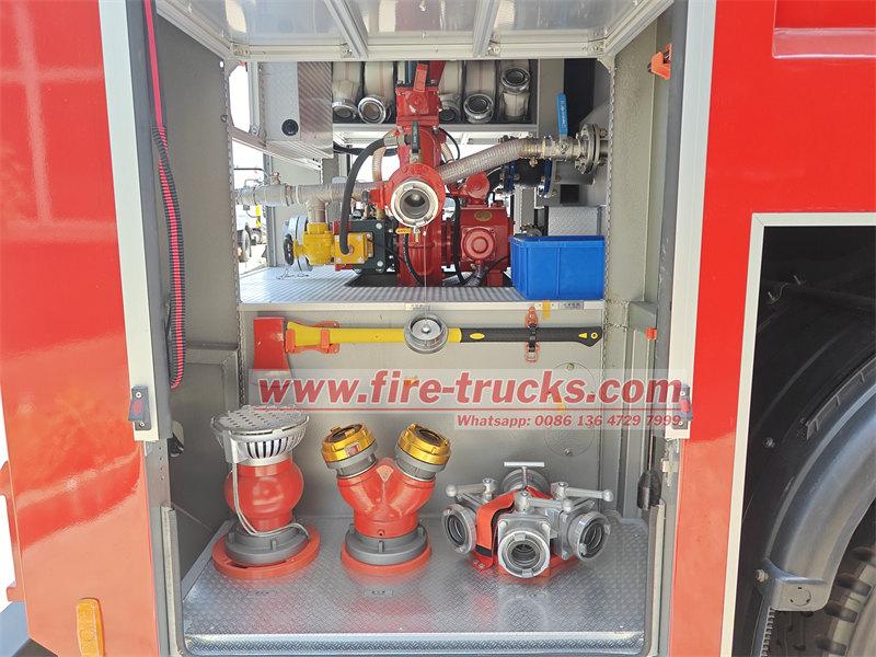 مظهر مخصص بنسبة 100%، تصميم سعة خزان المياه + الرغوة + المسحوق الجاف، غرفة المعدات لتخزين أدوات مكافحة الحرائق، كما يمكن تخصيص حجم الشاحنة بالكامل .