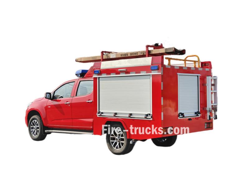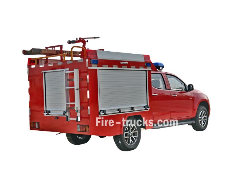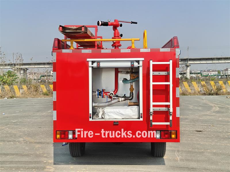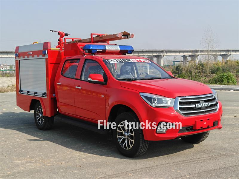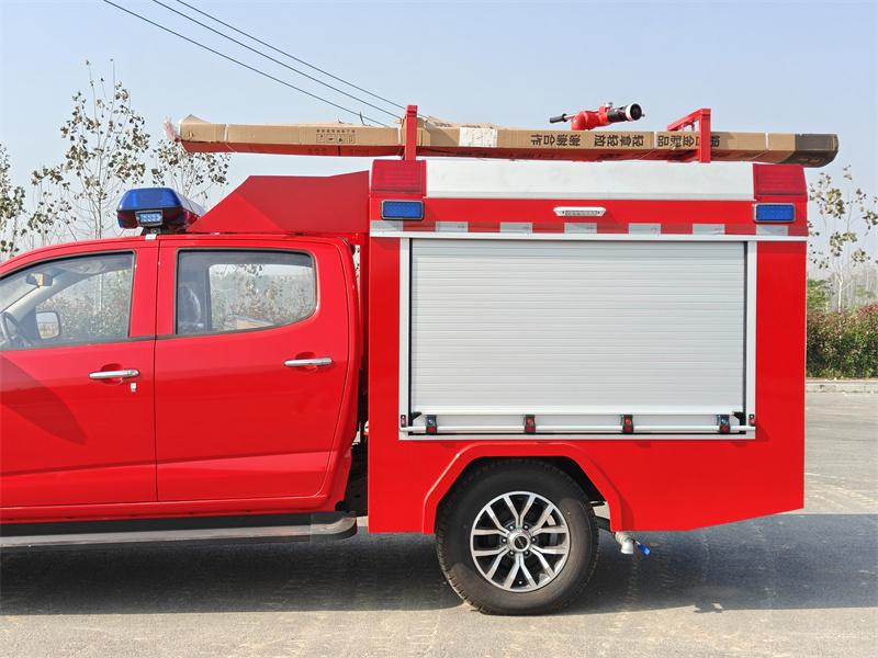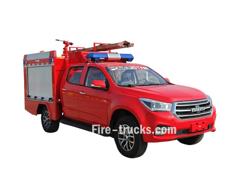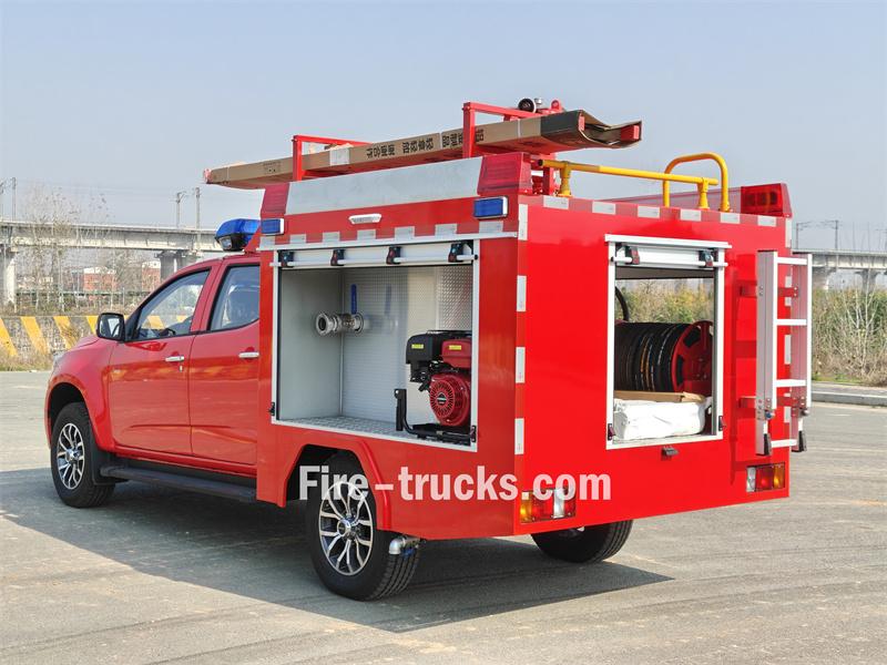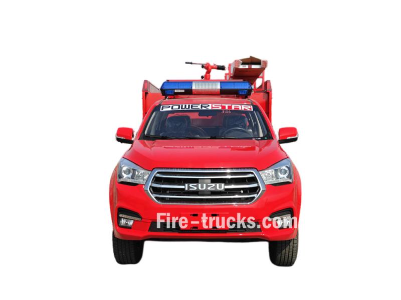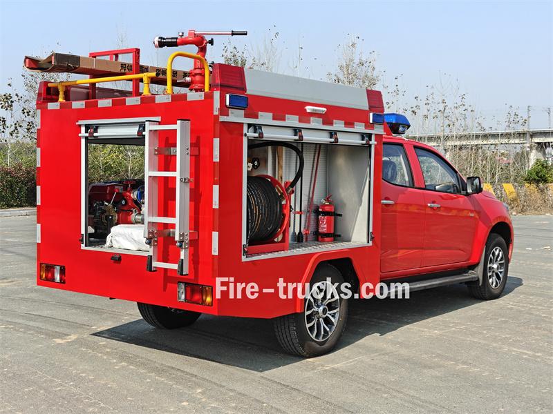 شاحنة إطفاء إيسوزو بيك أب هذه مبنية على هيكل شاحنة إيسوزو تاغا QL1030CZHW2 الفاخرة، بمحرك ديزل 3.0T بقوة 143 حصانًا، ونظام دفع رباعي، ومقصورة مزدوجة. وهي مجهزة بمحرك إيسوزو 4HK1CT6H1 وناقل حركة MLB بخمس سرعات. تتميز مقدمة الهيكل العلوي بخزان مياه من الفولاذ الكربوني سعة 500 لتر، وخزان رغوة من الفولاذ المقاوم للصدأ سعة 100 لتر. أما الجزء الخلفي، فيضم غرفة المضخة، المجهزة بمضخة يدوية JBQ4.5/9، وبكرة خرطوم كهربائية بطول 50 مترًا، ووحدة خلط رغوة الماء PH64. يحتوي السقف على جهاز مراقبة حريق PS8/20 واط، وسلّم، وفتحة صرف، ومصابيح إنذار حريق.