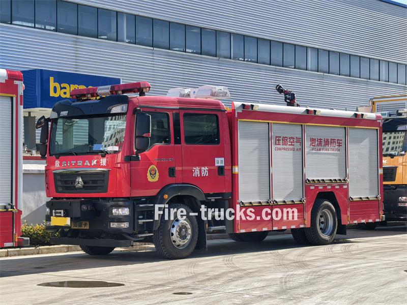 شاحنة إطفاء سينوتراك 6 متر مكعب CAFS مُعدّلة من هيكل سينوتراك C5H، بقاعدة عجلات 4700 مم. وهي مُجهزة بمحرك سينوتراك MC07H.35-60، وناقل حركة سريع ثماني السرعات، وخزان مياه سعة 5 أمتار مكعبة، وخزان رغوة من النوع A سعة 350 كجم، وخزان رغوة من النوع B سعة 550 كجم. المركبة مُجهزة بمضخة حريق عالية الأداء، وجهاز مراقبة حريق، ونظام CAFS، وهي سهلة التشغيل. تُستخدم هذه المركبة في مهام إنقاذ شاملة في حالات الطوارئ، مثل مكافحة الحرائق، والاستطلاع، والهدم، والإنقاذ، والإضاءة، والحماية.