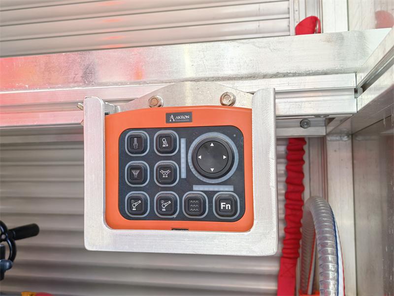لوحة التحكم: يتضمن النظام تعليمات تشغيل متكاملة، احتياطات، مخططات هيكلية لخزانات النوع A والنوع B وخزانات المياه، نظام تحكم شامل لشاحنة الإطفاء، أضواء تحذير، دواسة الوقود الإلكترونية، إيقاف/تشغيل المحرك، إعادة الضبط بضغطة زر واحدة، تعبئة المياه بضغطة زر واحدة، التحكم في النوع A بضغطة زر واحدة، التحكم في النوع B بضغطة زر واحدة، مفاتيح الإضاءة، مفتاح الطاقة الرئيسي، مفتاح إيقاف الطوارئ، وأزرار أخرى.
