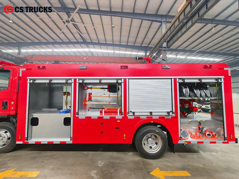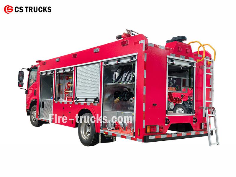 تعمل شاحنة إطفاء المياه إيسوزو 4000L بمحرك 4HK1-TC بقوة 175 حصانًا، وهي مبنية على هيكل إيسوزو 4×2. يوجد خزان مياه بسعة 4000 لتر خلف الكابينة، مع مضخة إطفاء CB10/30-RS (بمعدل تدفق 30 لترًا/ثانية عند ضغط 1.0 ميجا باسكال) مثبتة في غرفة المضخة الخلفية. يوفر مدفع مياه PS8/30W الموجود على السقف مدى مائيًا يصل إلى 60 مترًا على الأقل، ويغطي زاوية 360 درجة أفقيًا وزاوية رأسية من -35 درجة إلى 70 درجة رأسيًا. توفر حجرات المعدات على كلا الجانبين مساحة تخزين لخراطيم الإطفاء وأنابيب الشفط وأدوات الإنقاذ، مع جميع الملحقات القياسية.